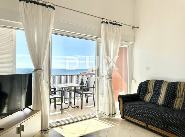 Predstavljamo vam jedinstven stan u centru Umaga, smješten u prvom redu do mora, u objektivno najpoželjnijoj zgradi u gradu, a lako moguće i šire. Stan se nalazi na trećem, ujedno i posljednjem katu zgrade izgrađene 2008. godine, koja je nedavno obnovljena novom fasadom i krovom. Opremljen je liftom, garažom te prostorom za bicikle u prizemlju, a svi važni sadržaji – od trgovina, restorana i šetnica – udaljeni su samo pet minuta hoda.
