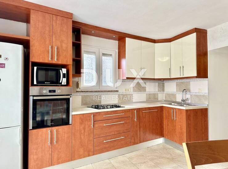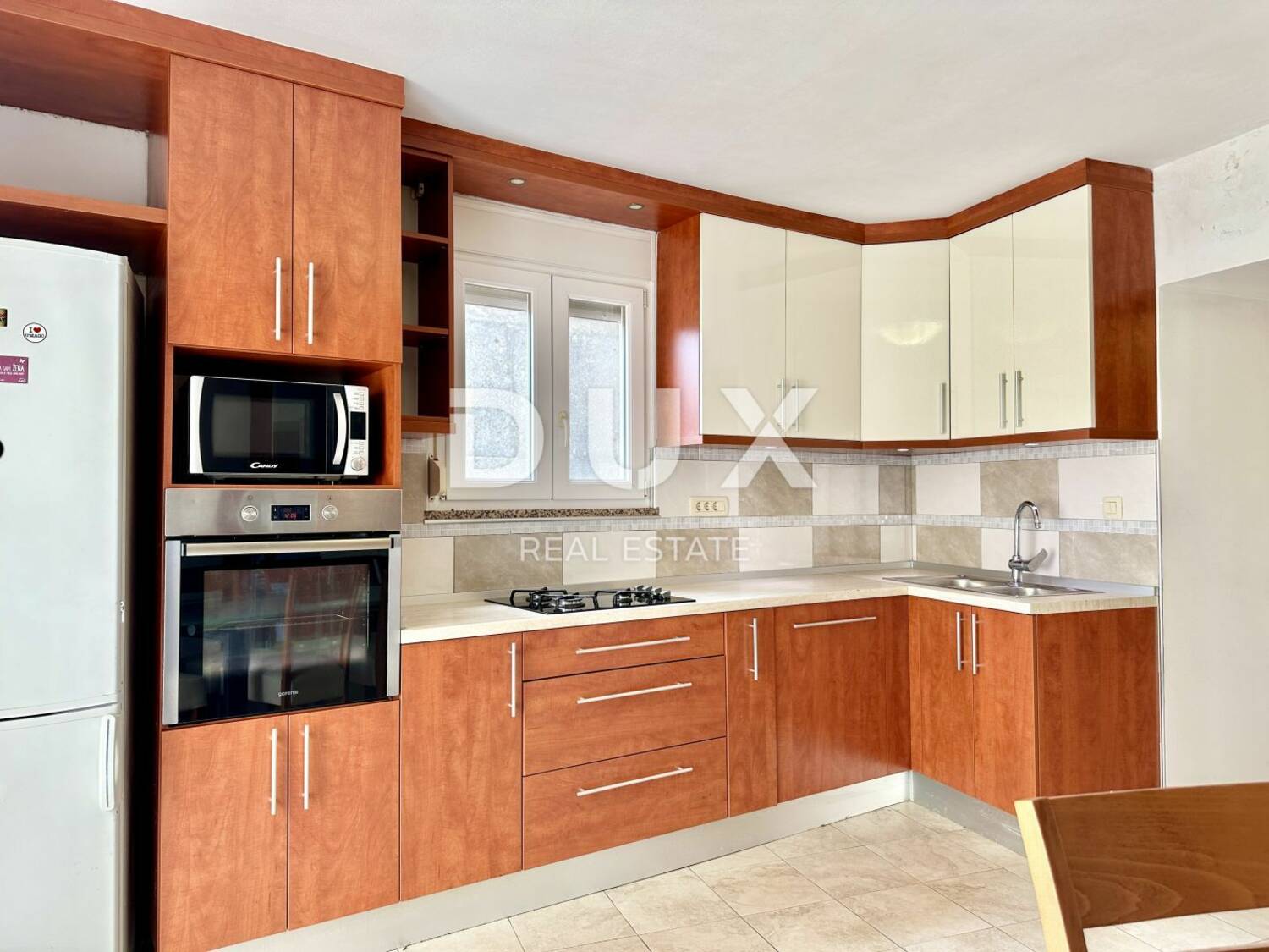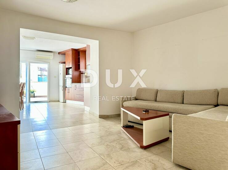Nudimo prekrasnu etažu od 100 četvornih metara na prvom katu u centru grada i 50 metara od mora. Ovaj prostrani stan pruža izvanredan open space koncept, objedinjujući dnevni boravak, kuhinju i blagovaonicu u jedan prozračan prostor. Osim toga, prostor se proširuje na vanjsku terasu, idealno mjesto za opuštanje ili zabavu s prijateljima i obitelji.
