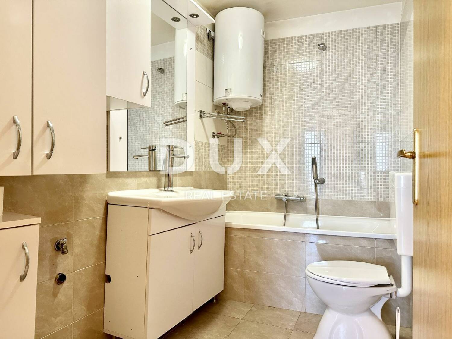 Dijelovi stana su razgraničeni tako da omogućuju privatnost i funkcionalnost. Veliki hodnik s ugradbenim ormarom vodi vas do dvije prostrane kupaonice i dvije velike spavaće sobe orijentirane na zapad, pružajući mir i udobnost nakon napornog dana. Također, tu je i dječja soba sjeverne orijentacije s pogledom na more, stvarajući inspirativan ambijent za mališane.