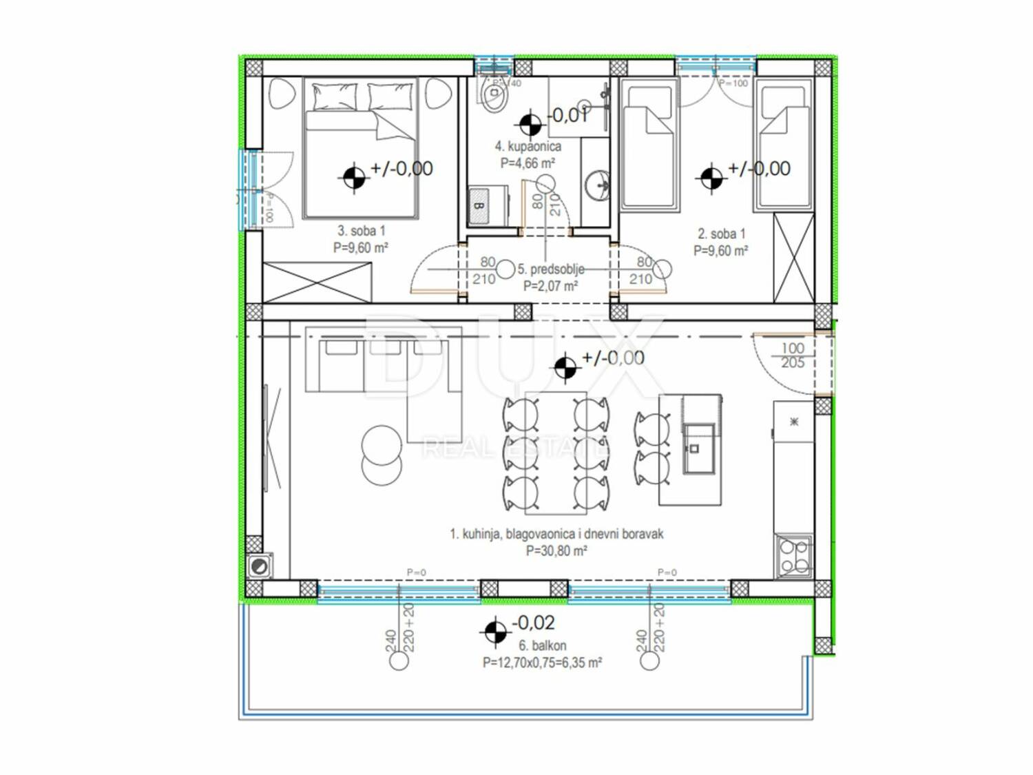 Predstavljamo vam stan u prizemlju novogradnje na atraktivnoj i mirnoj lokaciji u Umagu, savršen za obitelji koje traže siguran, moderan i funkcionalan dom. Ova nekretnina nudi ukupno 82 m² obračunske površine, uključujući stambeni dio, natkriveni balkon, vrt, vanjsko spremište i dva vlastita parkirna mjesta.