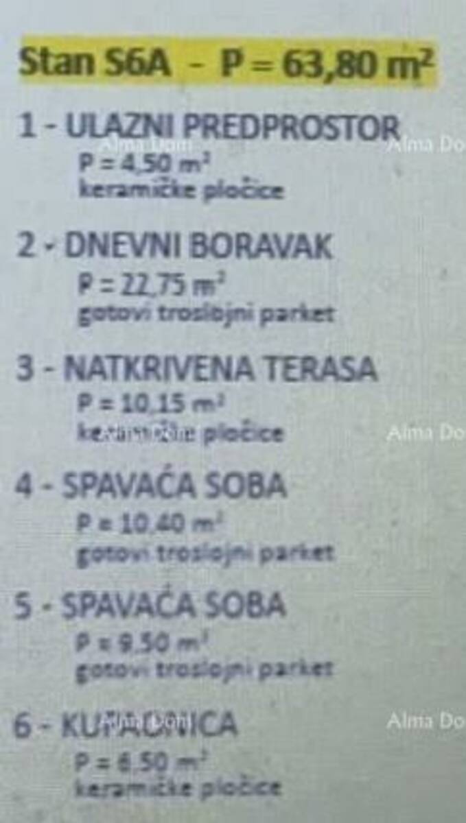 Ukupna površina stana iznosi 63,80 m², a funkcionalan raspored omogućava ugodan i praktičan svakodnevni život.