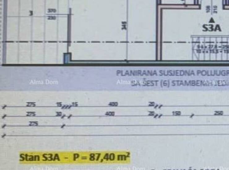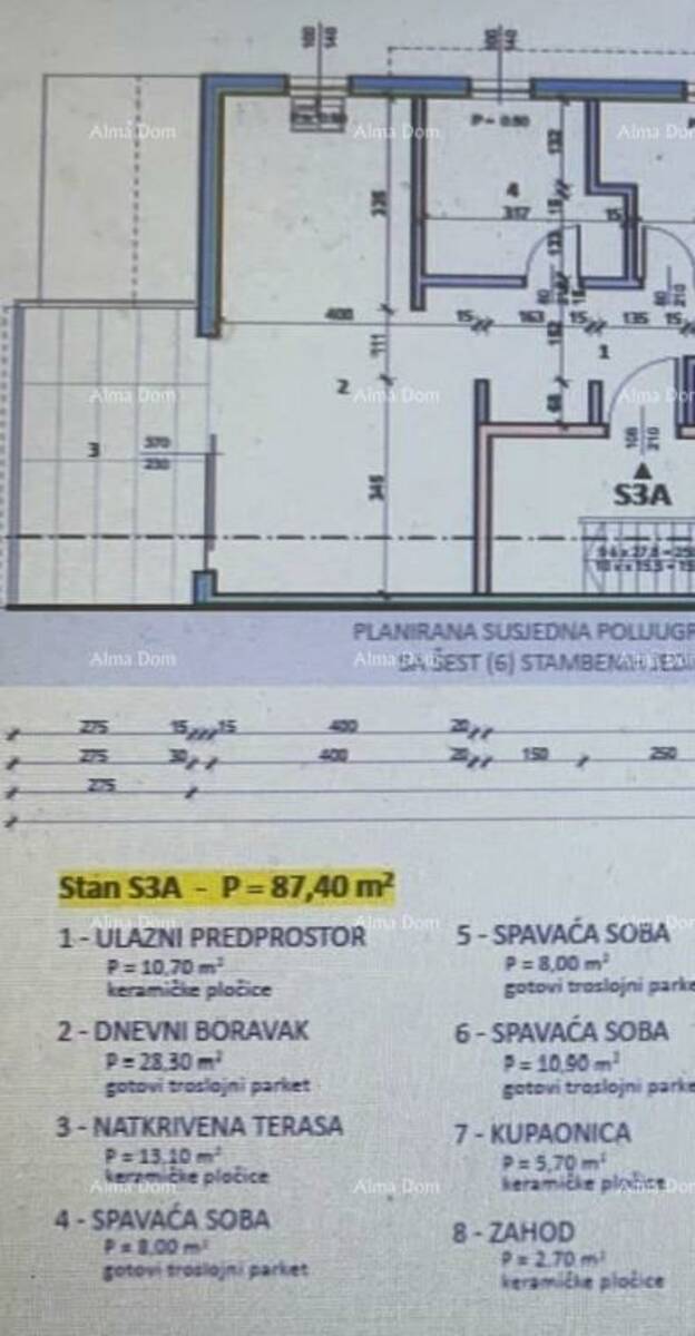 Ukupna površina stana: 87,40 m²