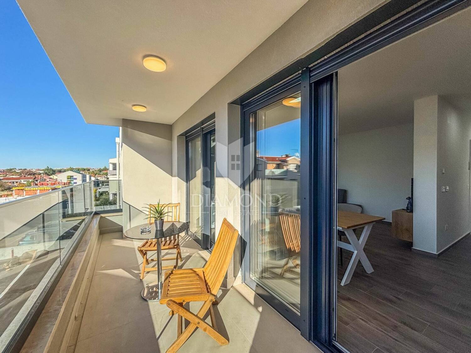 Na prodaju je moderan stan u okolici Umaga, udaljen svega 300 metara od prekrasne plaže. Smješten je na prvom katu manje stambene zgrade, u mirnom okruženju idealnom za opuštanje i uživanje u mediteranskom načinu života. Stan se prostire preko 66 m² i sastoji se od dvije udobne spavaće sobe, prostrane kupaonice, spremišta te kuhinje i blagovaonice otvorenog tipa povezane s dnevnim boravkom. Iz dnevnog dijela izlazi se na ugodan, svijetao balkon – savršeno mjesto za jutarnju kavu ili večernje opuštanje uz zalazak sunca.