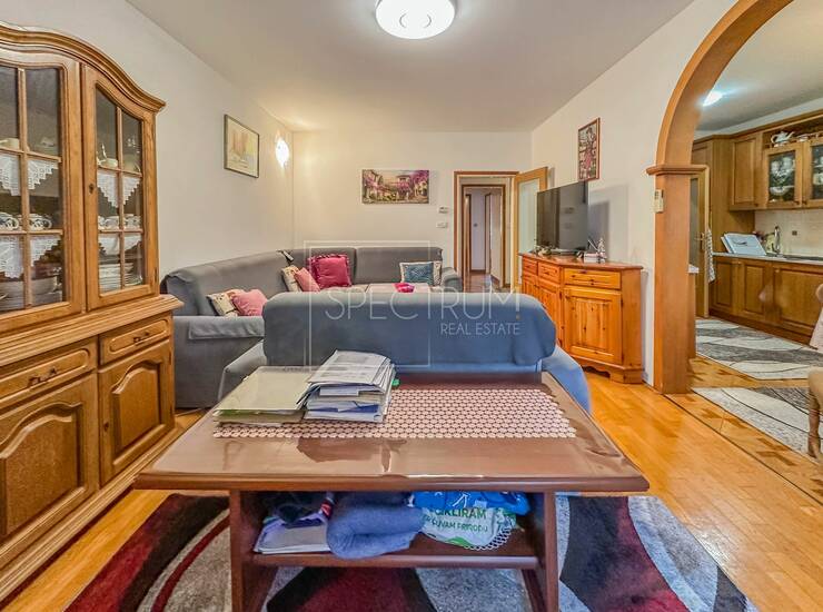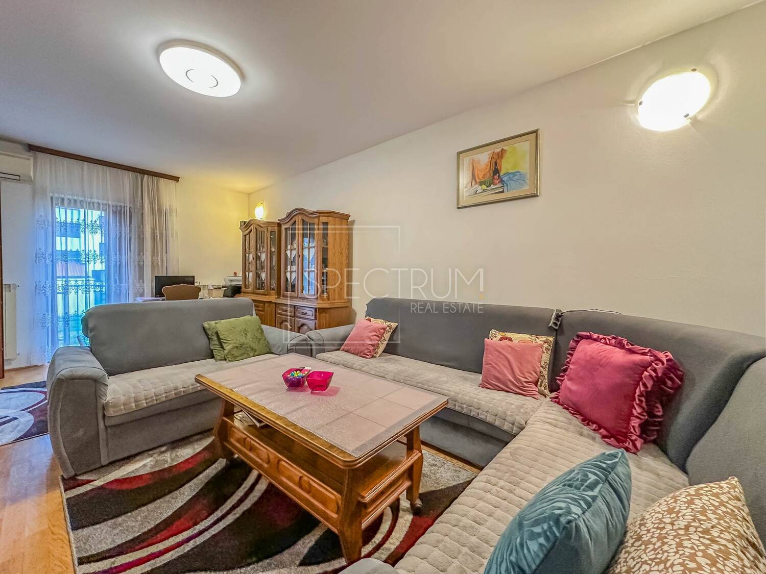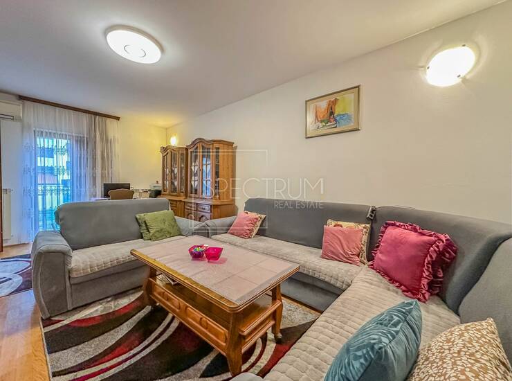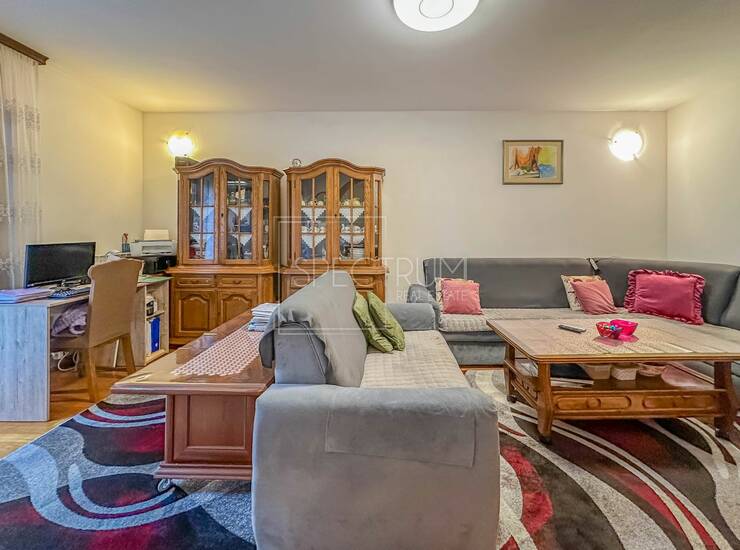 Stan se nalazi u visokom prizemlju stambene zgrade. Površina stana iznosi 84.13 m2. Stan se sastoji od ulaznog hodnika, dnevnog boravka, kuhinje sa blagovaonicom, 2 spavaće sobe, kupaonice, wc-a, ostave i loggie. Na loggiu se dolazi iz dnevnog boravka. Zbog svoje veće površine i dobrog rasporeda, stan zaista pruža komfor. Grijanje je regulirano putem klima uređaja i centralnog grijanja na drva. Sve instalacije struje i vode promijenjene su 2008.godine, a nedavno je postavljena nova stolarija i dodatna izolacija u spavaćim sobama i na podu. Stanu pripadaju i 2 spremišta koja se nalaze u suterenu zgrade. Fasada zgrade je renovirana 2021.godine. Privatni parking namijenjen isključivo za stanare se nalazi odmah pored same zgrade.