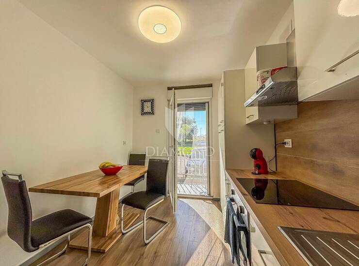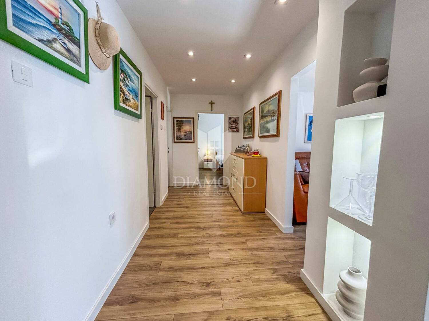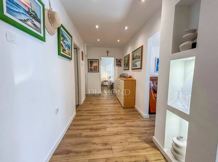 Stan se nalazi na visokom prizemlju i prostire se na više od 73 m², a raspored prostorija osigurava udobnost i funkcionalnost. Sastoji se od dvije prostrane spavaće sobe, dva balkona, kupaonice, velikog dnevnog boravka s izlazom na zatvoreni balkon, te osvjetljenog hodnika koji povezuje sve prostorije. Prostor odiše svjetlošću i ugodom, a zahvaljujući zatvorenom balkonu nudi dodatni kutak za opuštanje ili boravak tijekom cijele godine. Stan je temeljito renoviran 2024. godine — uključujući nove instalacije vode i struje — što novim vlasnicima omogućuje bezbrižno useljenje bez dodatnih ulaganja. Grijanje i hlađenje je regulirano putem dva klima uređaja, čime je stan ugodan tijekom svih godišnjih doba. Uz stan dolazi i spremište koje je upisano u vlasništvo, kao i osigurano parkirno mjesto na korištenje. Vlasnički list je uredan, a stan je odmah useljiv.