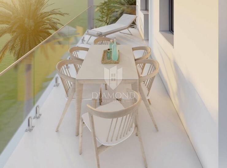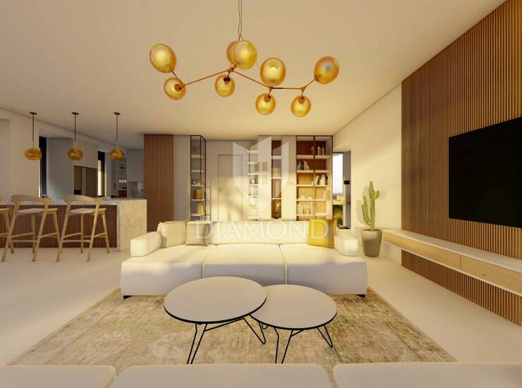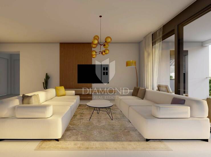 Pažljivo osmišljen i funkcionalan raspored obuhvaća prostrani dnevni boravak povezan s blagovaonicom i modernom kuhinjom, stvarajući idealan prostor za obiteljski život i druženja. Velike staklene stijene omogućuju obilje prirodnog svjetla te naglašavaju prozračnost i eleganciju interijera. Iz dnevnog boravka izlazi se na natkrivenu terasu. Stan raspolaže i master spavaćom sobom s vlastitom kupaonicom, te još 2 udobne spavaće sobe, dodatnom kupaonicom, odvojenim toaletom te tehničkom prostorijom, te 1 parkirnim mjestom čime u potpunosti zadovoljava potrebe suvremenog načina života.