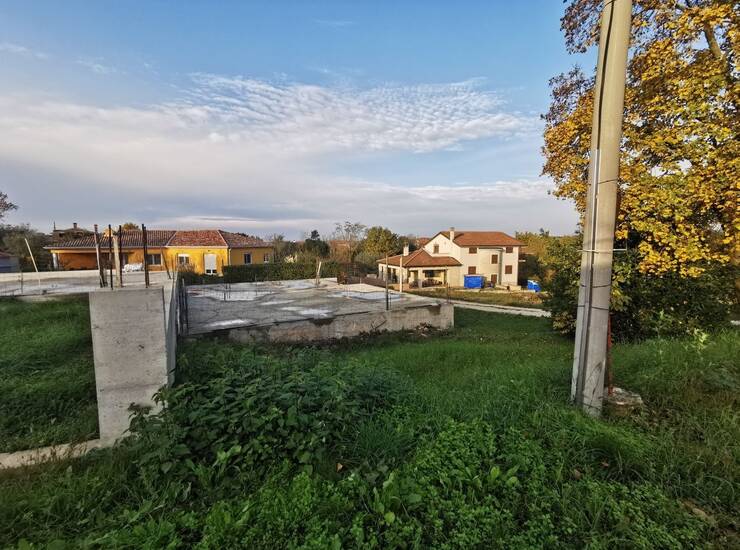 U neposrednoj blizini Umaga u mirnom naselju udaljenom 8 kilometara od Umaga te 3.5 kilometara od mora prodaje se ovo građevinsko zemljište sa započetom gradnjom.