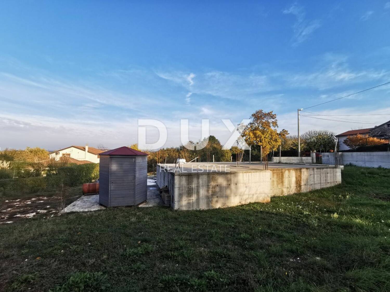 U neposrednoj blizini Umaga u mirnom naselju udaljenom 8 kilometara od Umaga te 3.5 kilometara od mora prodaje se ovo građevinsko zemljište sa započetom gradnjom.