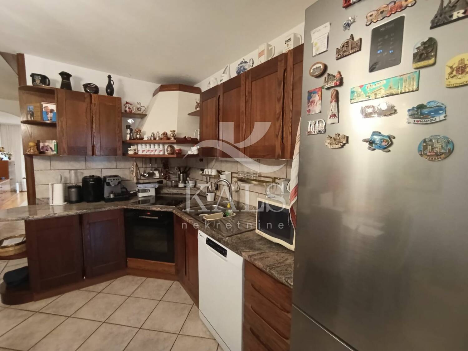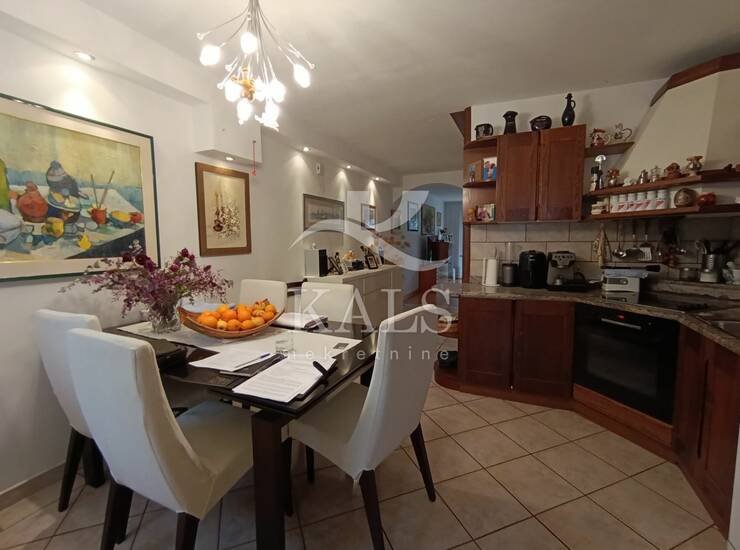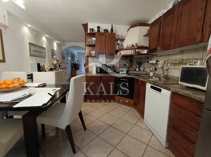 Kuća se sastoji od prizemlja, kata i potkrovlja. U prizemlju se nalaze dnevni boravak i kuhinja s blagovaonicom, WC za goste i manja ostava. Na prvom katu su dvije spavaće sobe i kupaonica dok su u potkrovlju još dvije manje sobe. Kući pripadaju i dvije terase s kojih se izlazi u mali i lijepo uređeni vrt te garaža koja se nalazi odmah pokraj.