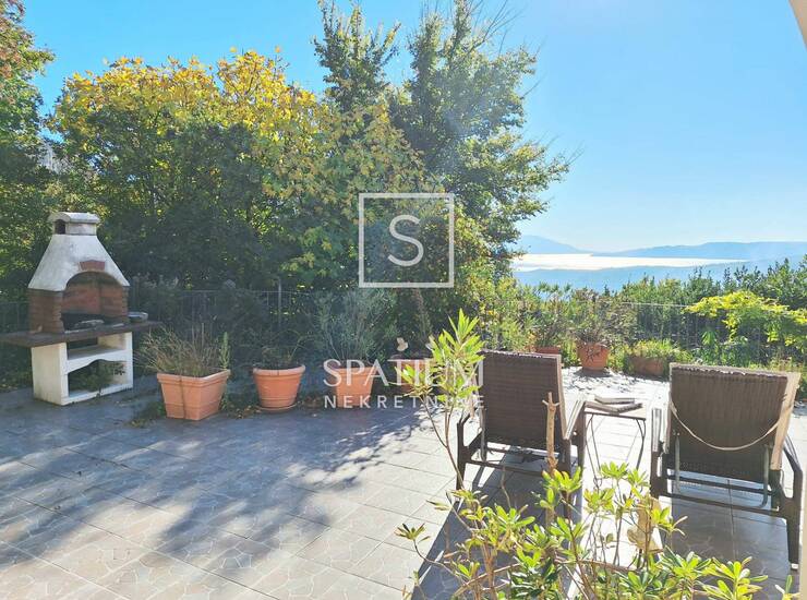 BRIBIR, SAMO U NAŠOJ PONUDI samostojeća prizemnica s garažom i pogledom na more. Kuća se sastoji od: ulaznog hodnika, spremišta, garaže, spavaće sobe s prostranom vlastitom kupaonicom, WC-a za goste, open space kuhinje s dnevnim boravkom, galerijom te blagovaonicom s izlazom na veliku natkrivenu terasu s pogledom na more.