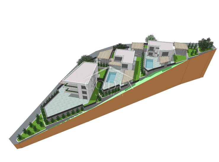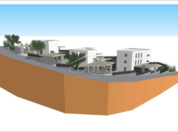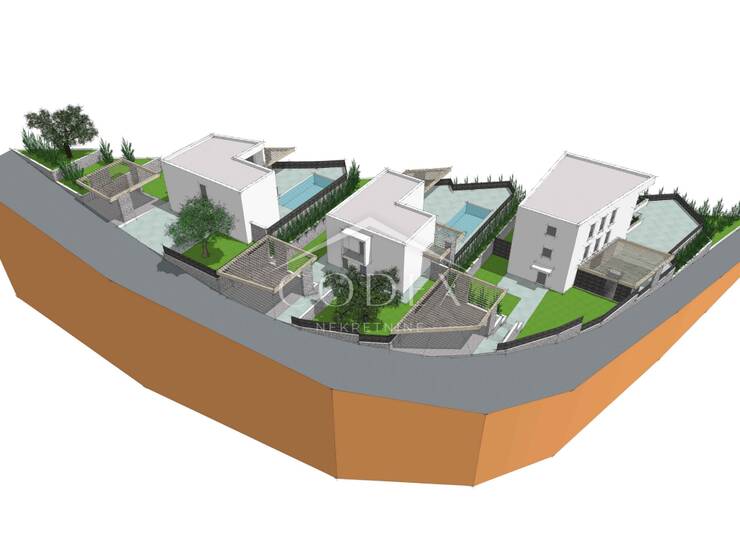 Infrastrukturna opremljenost ove parcele na najvišoj je razini te jamči funkcionalnost i udobnost. Pristup samom zemljištu osiguran je uređenim asfaltnim putem, dok se svi ključni priključci, uključujući gradski vodovod i električnu energiju, nalaze neposredno na samoj lokaciji. Teren je svojom pozicijom i konfiguracijom idealno prilagođen arhitektonskom rješenju koje nudi maksimalnu privatnost, prostrane životne prostore raspoređene na dvije etaže te vanjski dio namijenjen opuštanju uz bazen i osigurana parkirna mjesta.