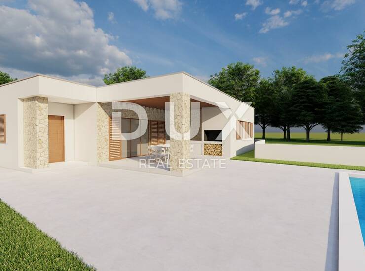 Ekskluzivna prizemna vila s bazenom na otoku Viru, savršen spoj luksuza i udobnosti! Ova elegantna nekretnina prostire se na 180 m2 neto površine, smještena na prostranom zemljištu od 886 m2, nudeći idealan prostor za opuštanje i uživanje u mediteranskom okruženju.