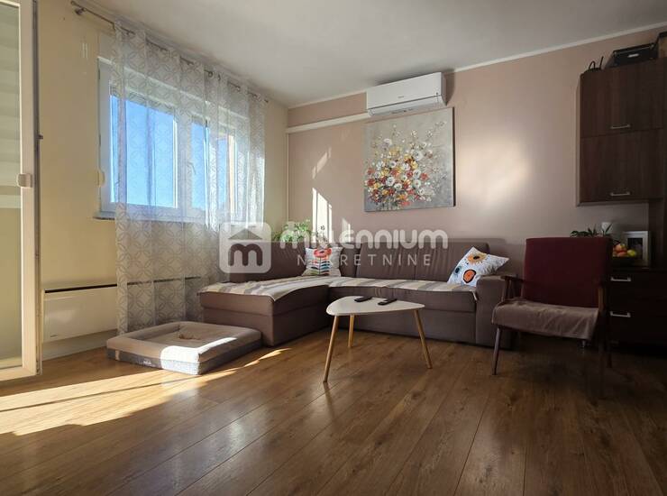 Na prodaju je lijep i uredan stan površine 68.23m², smješten u prizemlju manje stambene zgrade s ukupno šest stanova. Rasporedom je dvosobni s dnevnim, a sastoji se od hodnika, dnevnog boravka, blagovaonice povezane s kuhinjom, kupaonice, dvije sobe i lođe površine 63.78m², a dodatno mu pripada spremište od 4.45m².
