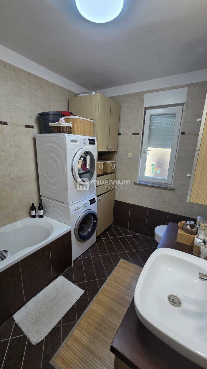 Stan je uređen, svijetao i funkcionalan, s izlazom na vrt koji je na korištenje, što ga čini posebno ugodnim za obiteljski život. Ima PVC stolariju i grijanje na struju.