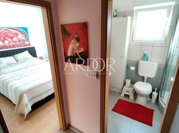 Na Viškovu (Kosi), prodaje se moderno uređen i potpuno namješten dvosoban stan ukupne površine 65,25 m². Nalazi se u manjoj stambenoj zgradi na 1. katu. Stanu pripada vlastito parkirno mjesto površine 13 m², spremište od 2,28 m² te etažirana okućnica od 80 m², savršena za opuštanje i boravak na otvorenom. Stan se sastoji od kuhinje s blagovaonicom i dnevnim boravkom, dvije spavaće sobe, kupaonice, hodnika i balkona. Grijanje i hlađenje omogućeno je putem klima uređaja u dnevnom boravku, a svaka soba dodatno je opremljena kvalitetnim Glamox norveškim električnim radijatorima. Stolarija je PVC, što pruža odličnu izolaciju i udobnost tijekom cijele godine. Stan se prodaje potpuno namješten i spreman za useljenje, bez potrebe za dodatnim ulaganjima.