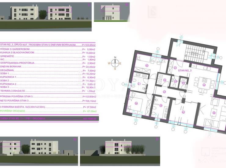 Viškovo - Marčelji, stan u novogradnji, trosoban s dnevnim boravkom, dvije kupaone, tri parking mjesta.