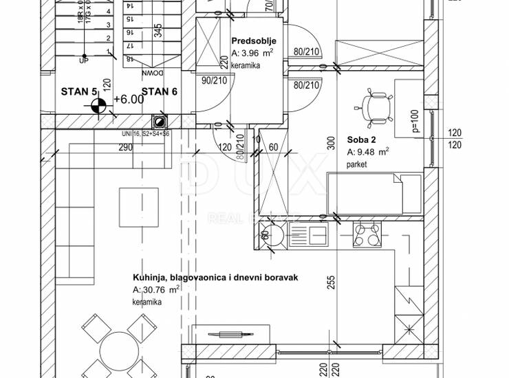 Kuhinja, blagovaonica i dnevni boravak: 30,76 m2