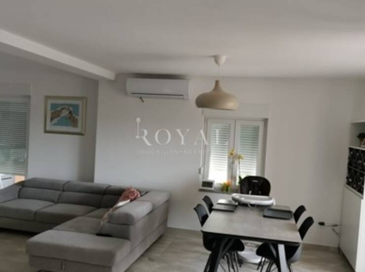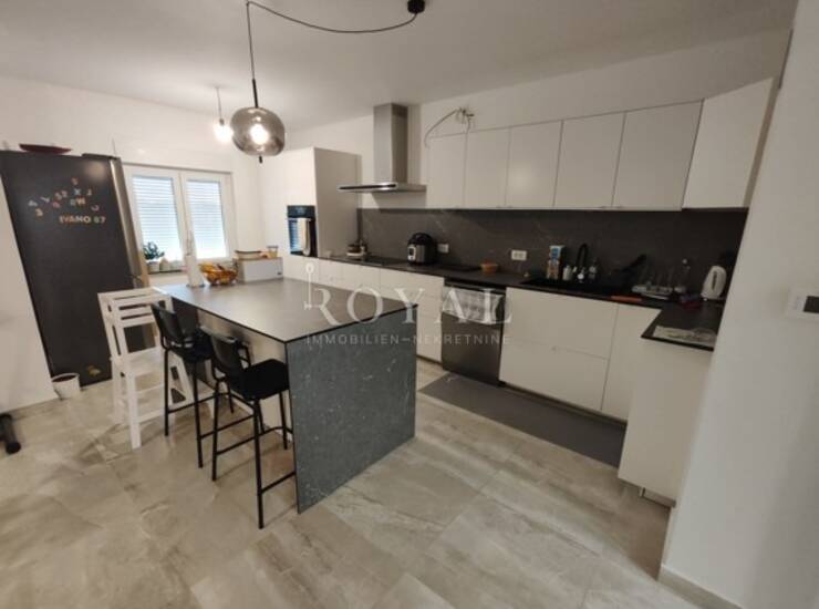 Stan je temeljito adaptiran s posebnim naglaskom na funkcionalnost, kvalitetu materijala i moderan dizajn. Namještaj po mjeri izrađen je s puno pažnje na detalje, a nekretnina se prodaje djelomično namještena, prema dogovoru.