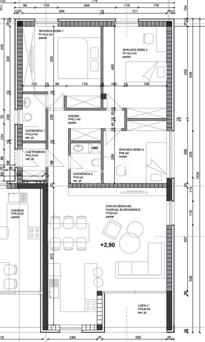 VIŠKOVO, TROSOBAN STAN U NOVOGRADNJI