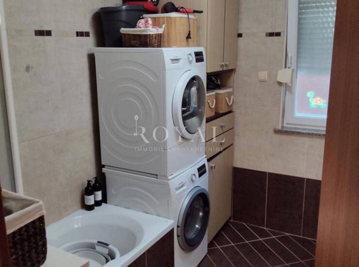 Posebnost ove nekretnine je uređena okućnica površine cca 200 m², idealna za obiteljska druženja, dječju igru ili uživanje u miru i zelenilu. Uz stan dolaze i dva parkirna mjesta. Nalazi se u slijepoj ulici, što osigurava privatnost i dodatnu sigurnost.