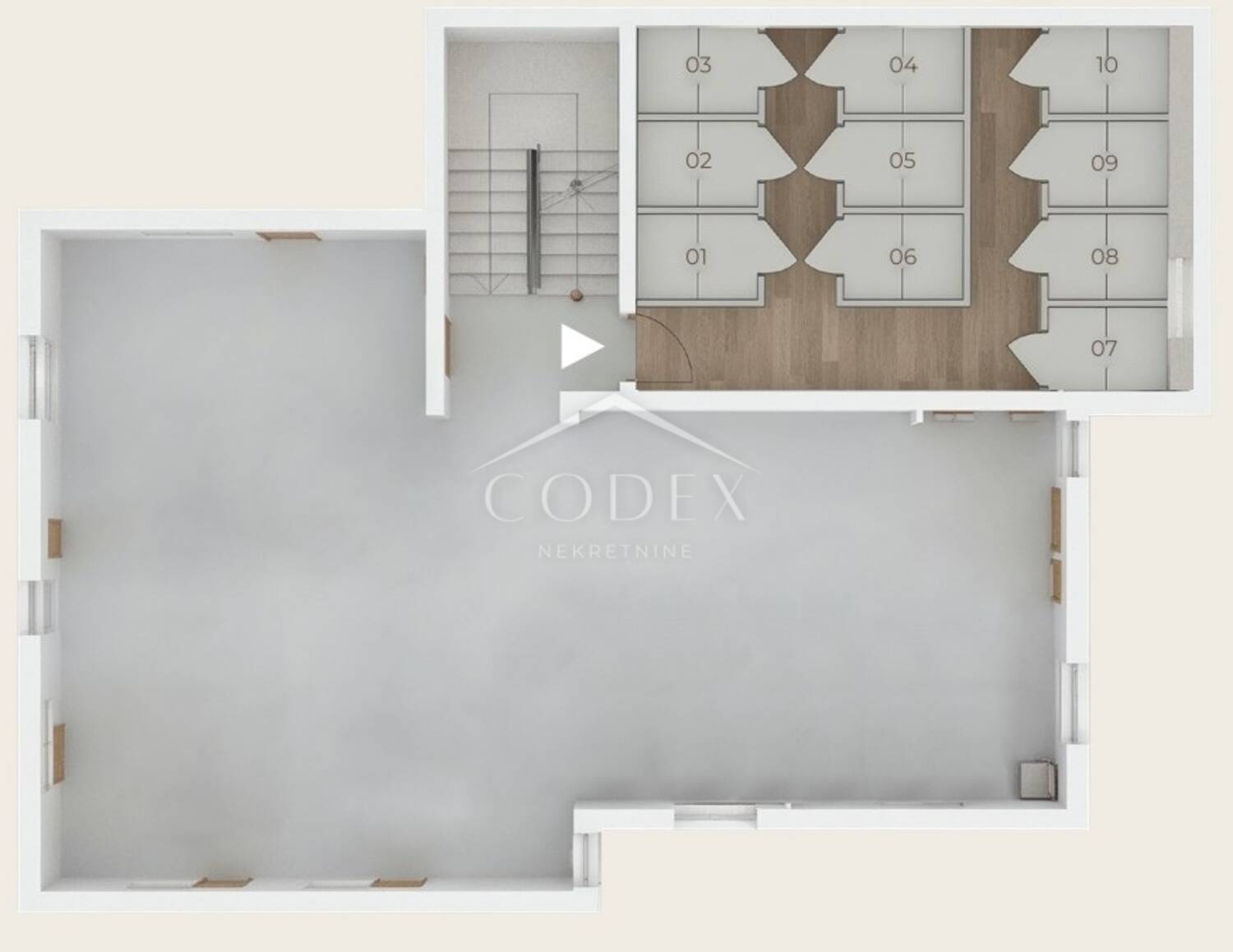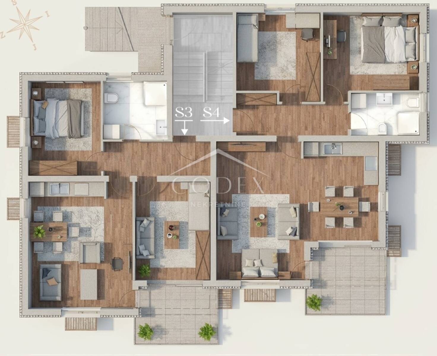 Zgrada je orijentirana tako da osigurava obilje prirodnog svjetla tijekom cijelog dana, a funkcionalni raspored stanova i parkirnih mjesta dodatno doprinosi praktičnosti svakodnevnog života. Svi stanovi imaju natkrivene terase koje proširuju životni prostor i omogućuju boravak na otvorenom u privatnosti vlastitog doma. U podrumu zgrade nalaze se pripadajuća spremišta, dok je svakom stanu osigurano i parkirno mjesto, uključeno u cijenu.