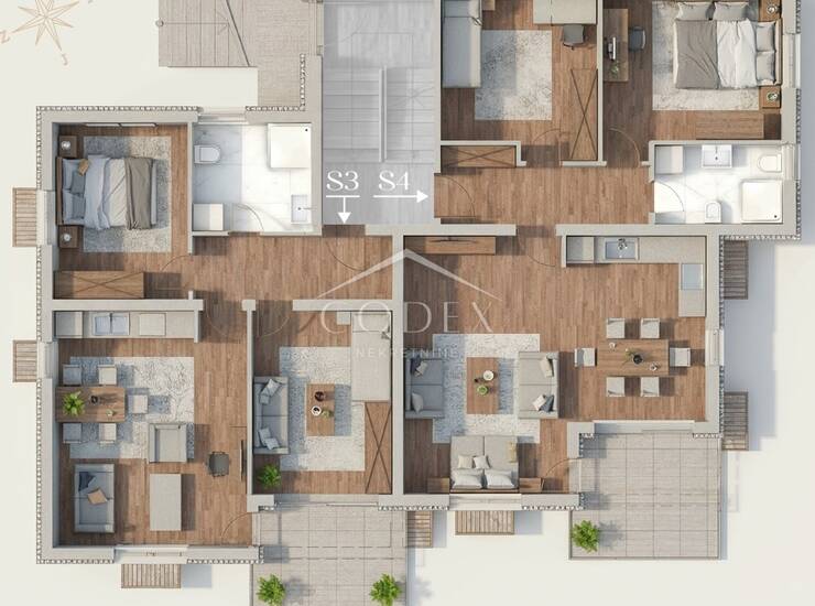 U mirnom i zelenilom okruženom naselju Saršoni, u općini Viškovo i svega nekoliko minuta vožnje od Rijeke, smještena je moderna stambena novogradnja s ukupno osam stanova, osmišljena za kvalitetan i ugodan način života. Projekt je pažljivo planiran kako bi stanarima pružio maksimalnu udobnost, funkcionalnost prostora i osjećaj privatnosti, uz istovremenu blizinu svih važnih gradskih sadržaja.