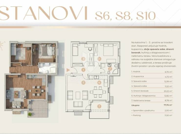 Prodaje se stan od 78 m² u kvalitetnoj novogradnji na Saršonima, idealan za ugodan i moderan život. Stan se nalazi na drugom katu te ima prostranu natkrivenu terasu, savršenu za boravak na otvorenom.