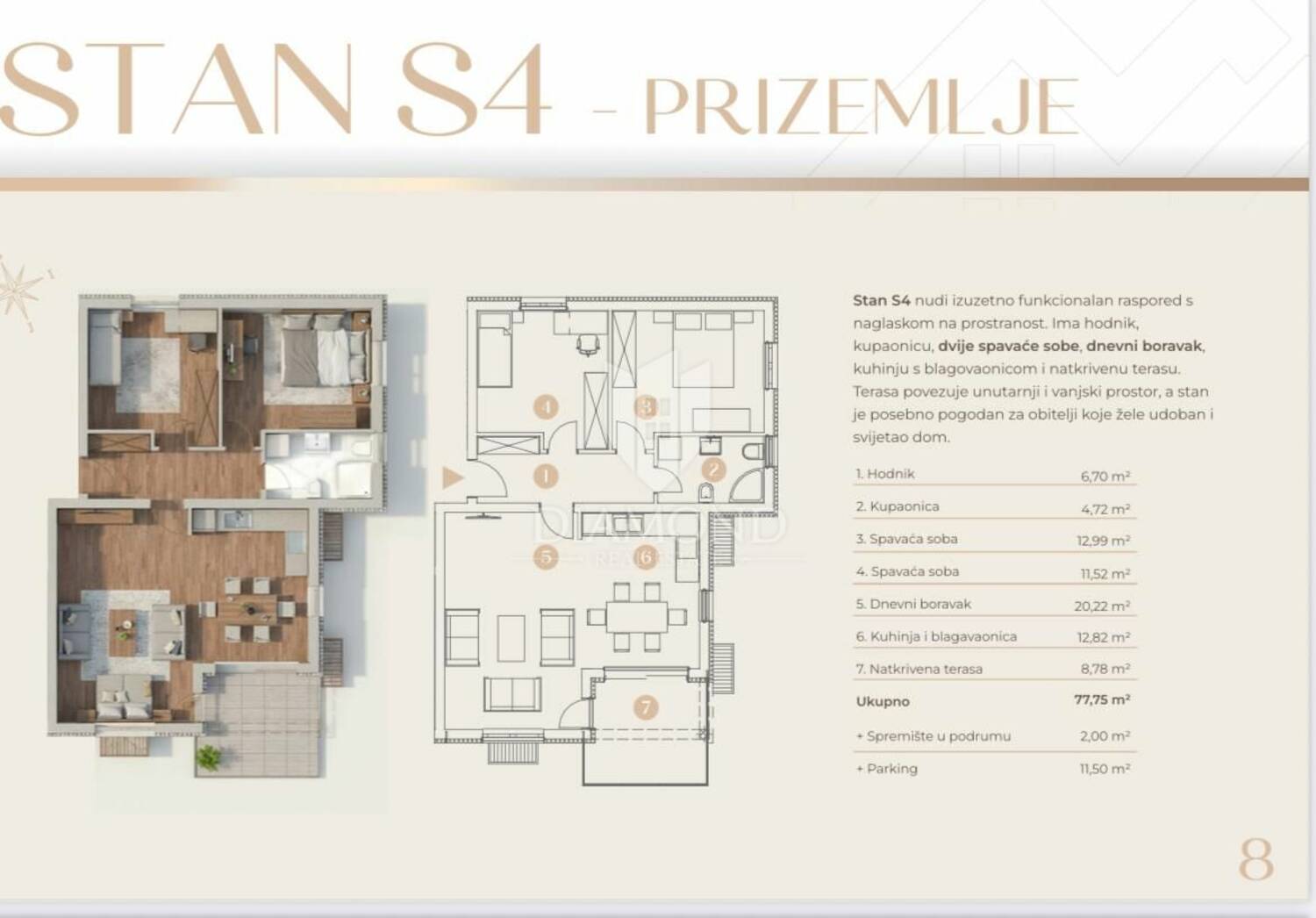 Prodaje se stan od 78 m² u kvalitetnoj novogradnji na Saršonima, idealan za ugodan i moderan život. Stan se nalazi u prizemlju te ima prostranu natkrivenu terasu, savršenu za boravak na otvorenom.