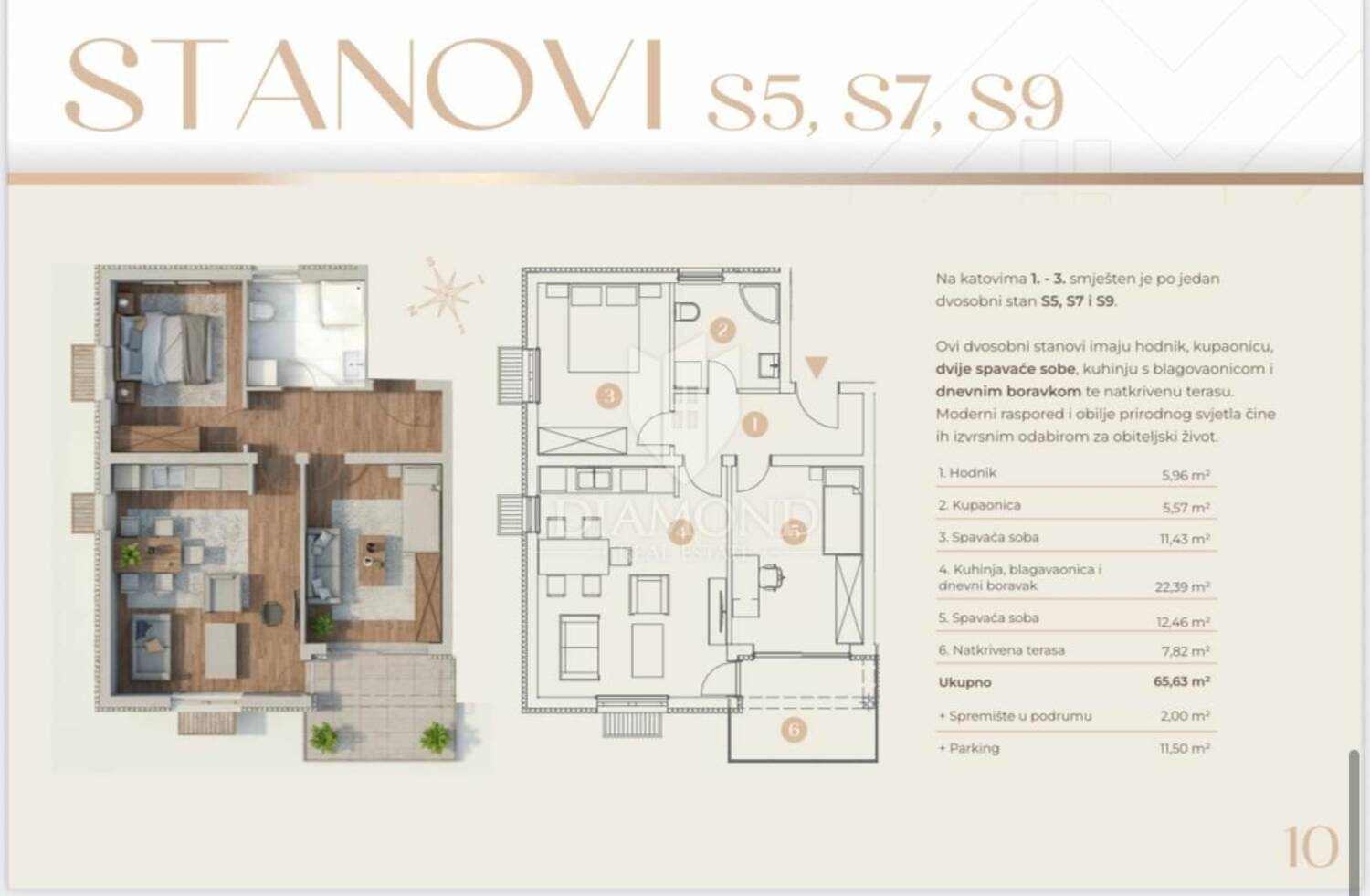Prodaje se stan od 66 m² u kvalitetnoj novogradnji na Saršonima, idealan za ugodan i moderan život. Stan se sastoji od prostranog dnevnog boravka s kuhinjom i blagovaonicom, dvije udobne spavaće sobe te funkcionalne kupaonice.