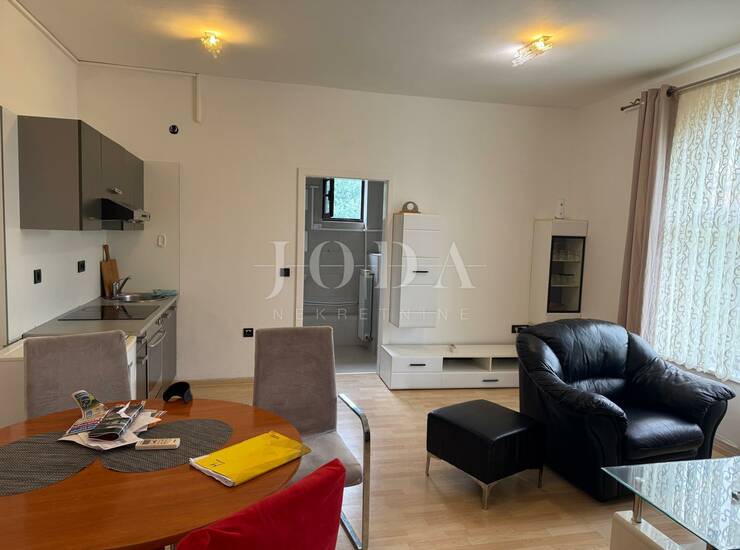 Stan u prizemlju koji se sastoji od ulaznog hodnika, veće spavaće sobe od koje se mogu napraviti i dvije, kuhinje sa blagovaonom i kupaone s wc-om, ukupne površine 53.43 m2. Stanu pripada parkirno mjesto broj 5 garaža za dva auta površine 28 m2. Lijepa lokacija, blizina centra Viškova, autobusne stanice i svih drugih životnih sadržaja.