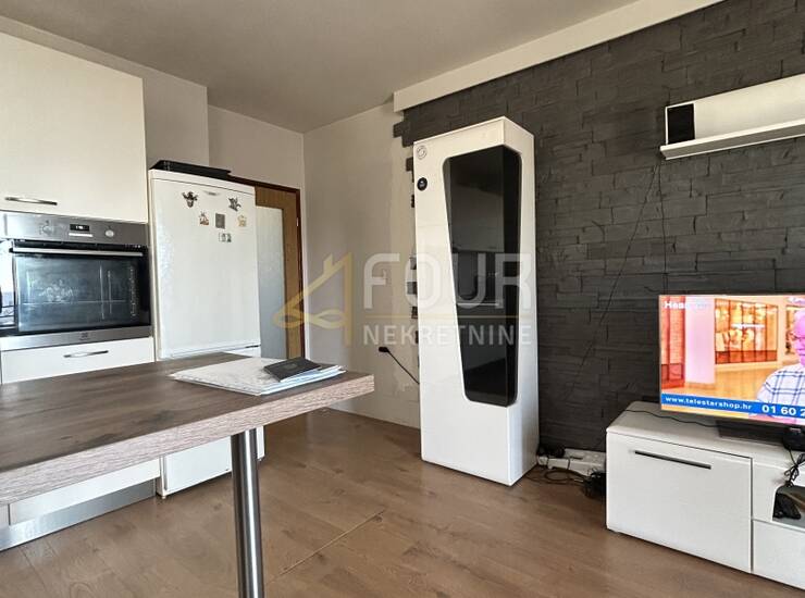 Funkcionalan i dobro koncipiran stan, koji se sastoji od jedne sobe, hodnika, kupaonice te kuhinje s blagovaonicom i dnevnim boravkom, a posebna prednost su dva balkona – jedan ima izlaz iz sobe, dok je drugi povezan s dnevnim boravkom.