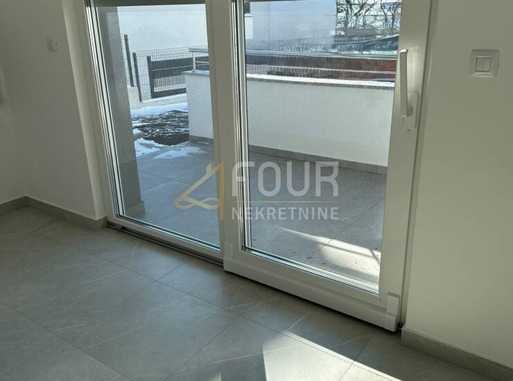 Opremljen je kvalitetnim materijalima i suvremenim sustavima, uključujući podno grijanje na dizalicu topline te ALU stolariju, što osigurava visoku energetsku učinkovitost i ugodan boravak tijekom cijele godine. Uz stan dolazi i drvarnica.