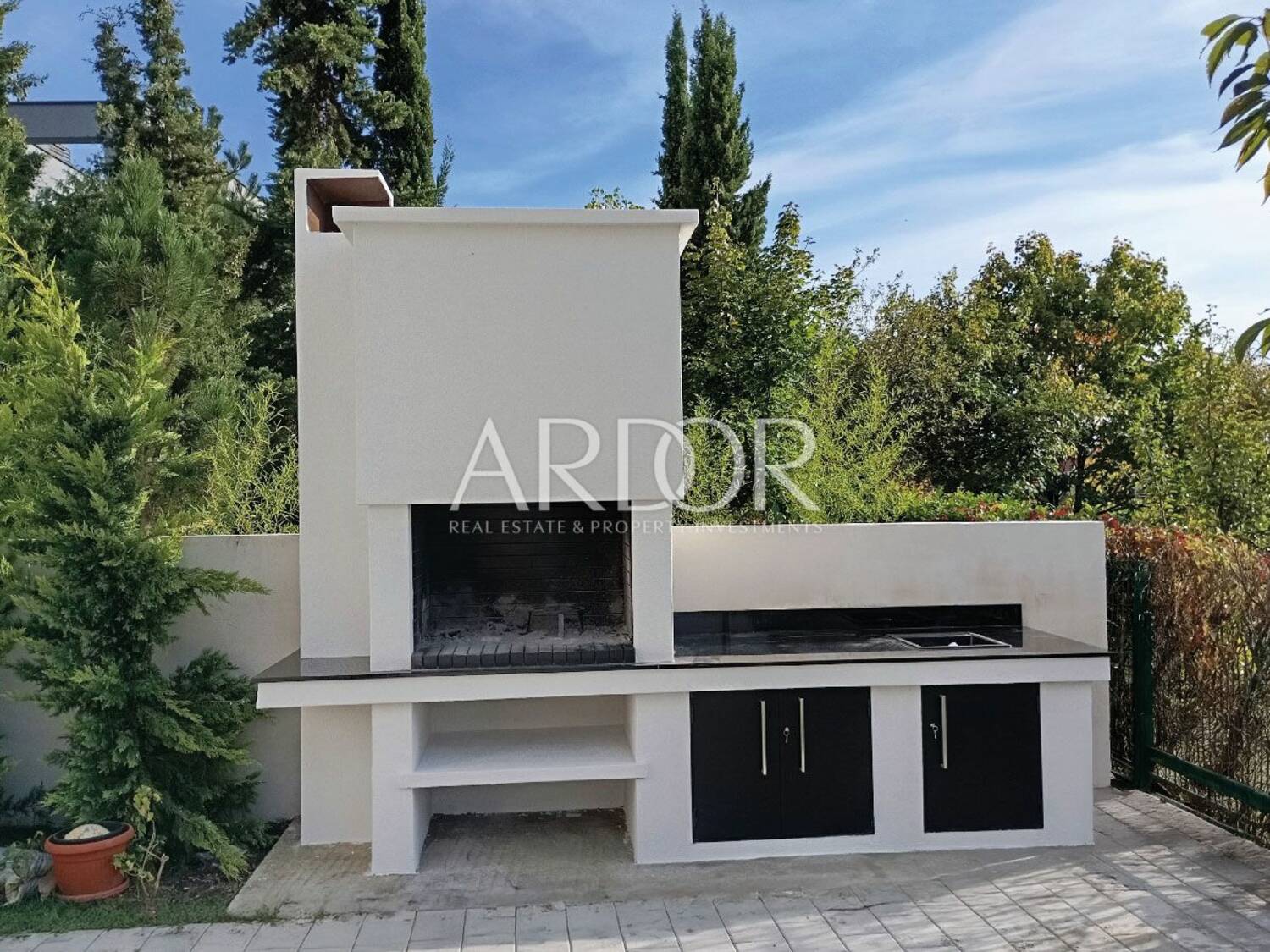 Stan dolazi sa dva parkirna mjesta, vlastitim spremištem, te kao dodatnu vrijednost uključuje i zidani vanjski kamin sa sudoperom i utičnicom, smješten uz ogradni zid okućnice — savršen za druženja i uživanje na otvorenom.
