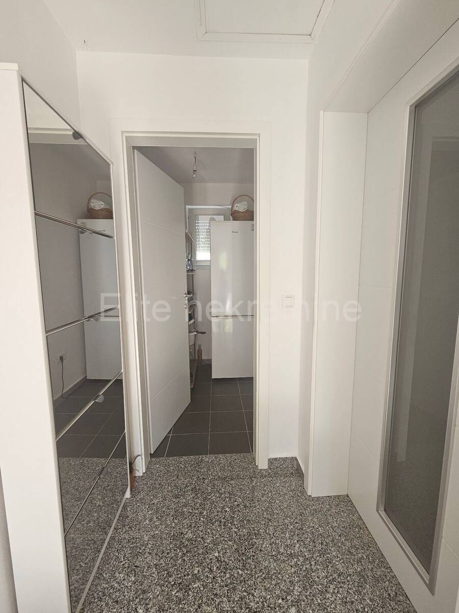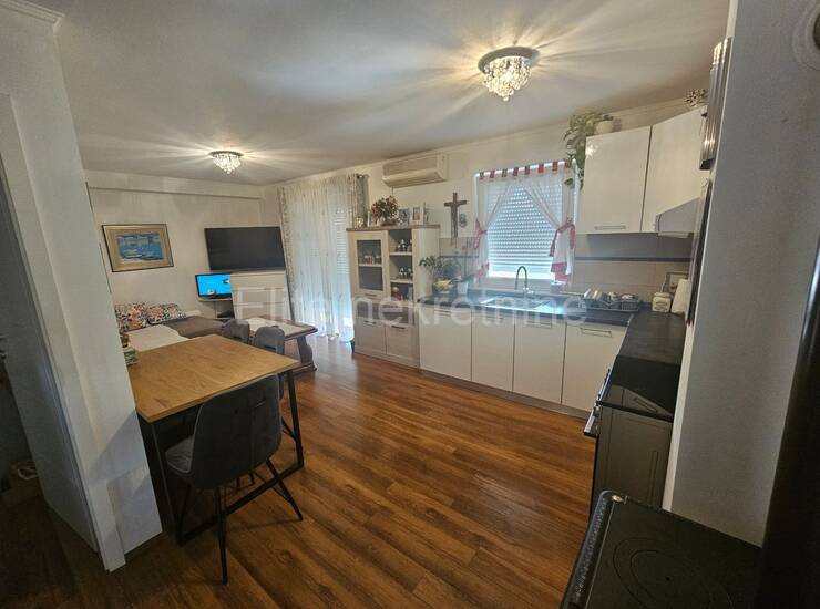 Stan je kompletno renoviran 2015. godine, pažljivo održavan i spreman za useljenje bez dodatnih ulaganja. Opremljen je klima uređajem i peći na drva, što osigurava ugodnu temperaturu tijekom cijele godine. Interijer odiše toplinom i modernošću, a namještaj je uključen u cijenu.