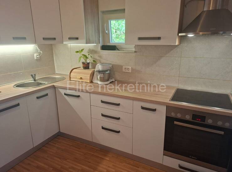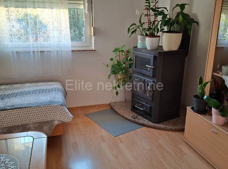 Stan se nalazi u prizemlju kuće, dvosoban s dnevnim boravkom, pripadajućim parkirnih mjestom, terasom i ostavom od 10 m2. U blizini svih sadržaja, par minuta od centra. Stan je sa urednom dokumentacijom, bez tereta.Grijanje je na struju i peć na drva .