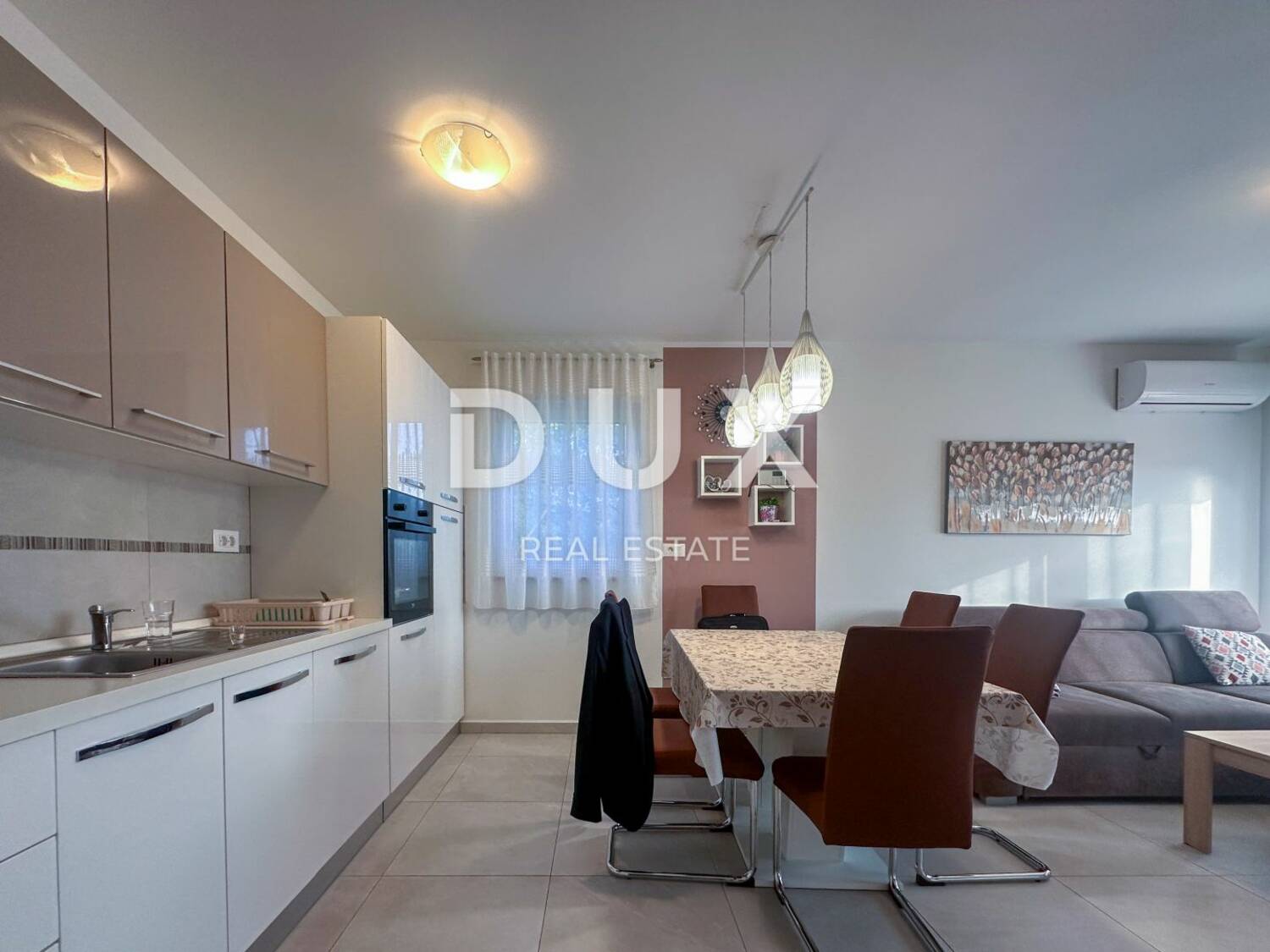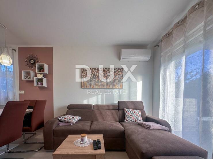 U DUX ponudu dobili smo stan smješten na prvom katu uredne i kvalitetno građene novogradnje koja broji svega šest stanova, što jamči mir i privatnost. Stan se sastoji od spavaće sobe, dnevnog boravka povezanog s kuhinjom i blagovaonicom, kupaonice te hodnika. Svaki detalj u stanu pažljivo je osmišljen kako bi pružio maksimalnu udobnost, a prirodna svjetlost dodatno doprinosi osjećaju topline i prozračnosti.