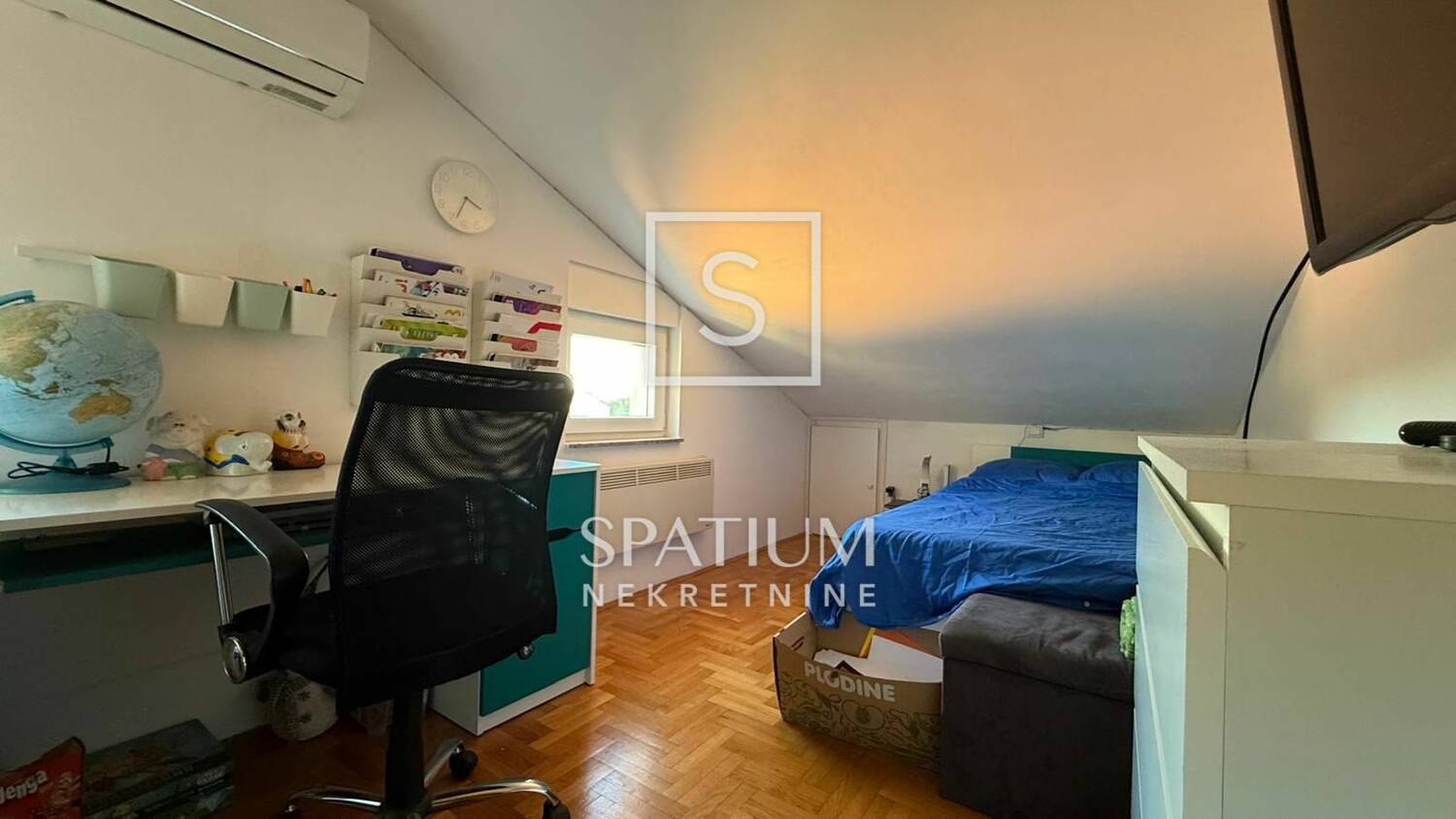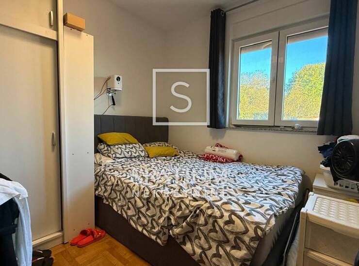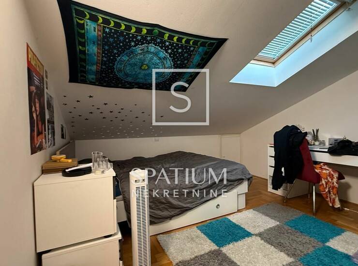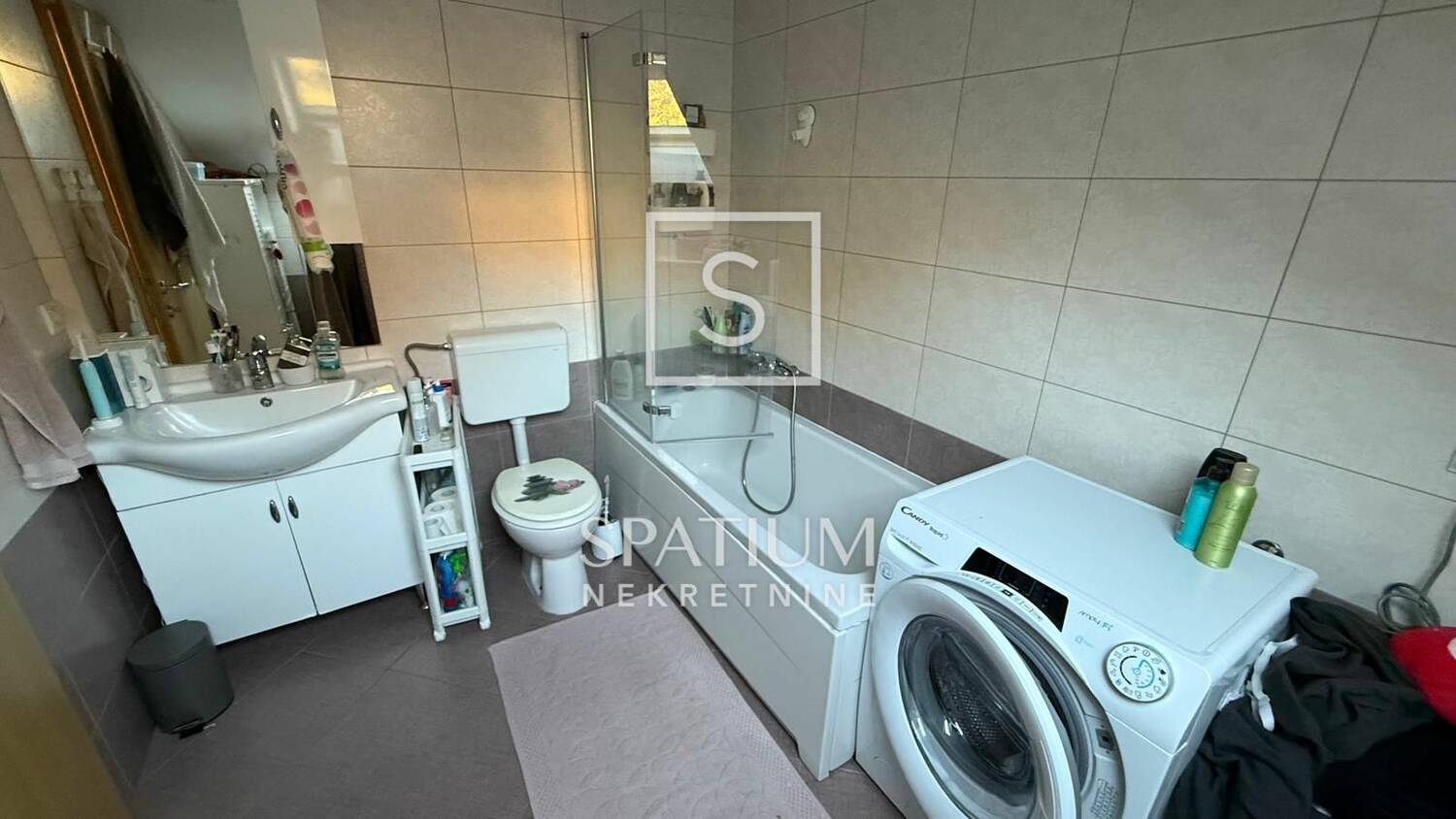Na donjoj etaži nalazi se ulazni hodnik, dnevni boravak povezan s kuhinjom i blagovaonicom te mali WC. Na gornjoj etaži nalaze se dvije spavaće sobe, kupaonica s kadom i WC-om te dodatno spremište. Stan je potpuno uređen, klimatiziran i odmah useljiv. Prostor je svijetao i prozračan, a raspored funkcionalan i praktičan za svakodnevni život. Posebna prednost je mirno okruženje što ga čini idealnim izborom za obiteljski život ili ugodan dom za parove.