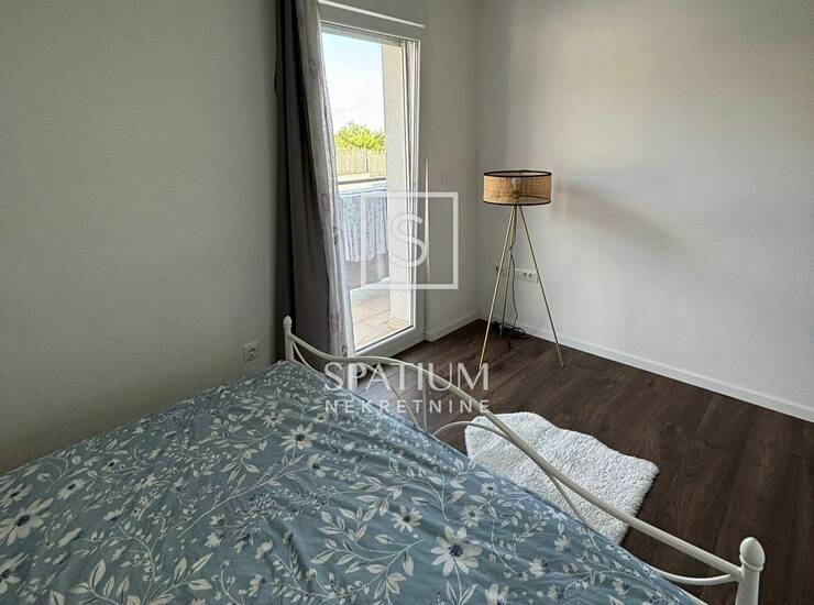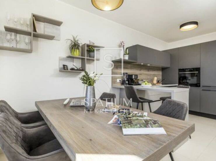 Uz stan dolazi i vanjsko parkirno mjesto površine 12,50 m², a stanari zgrade imaju na korištenje lijepo uređenu zajedničku okućnicu s dvorištem i bazenom. Nekretnina predstavlja odličan izbor za ugodan obiteljski život, ali i atraktivnu investiciju za turistički najam.