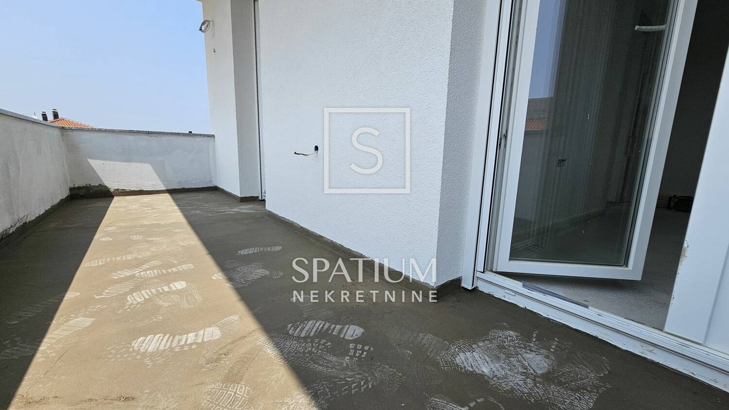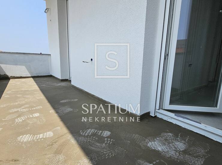 Stan ima vlastitu natkrivenu terasu, idealnu za uživanje u miru i suncu, te mu pripadaju 3 vanjska parkirna mjesta te dio okućnice površine cca 40m², što je velika prednost u svakodnevnom životu.