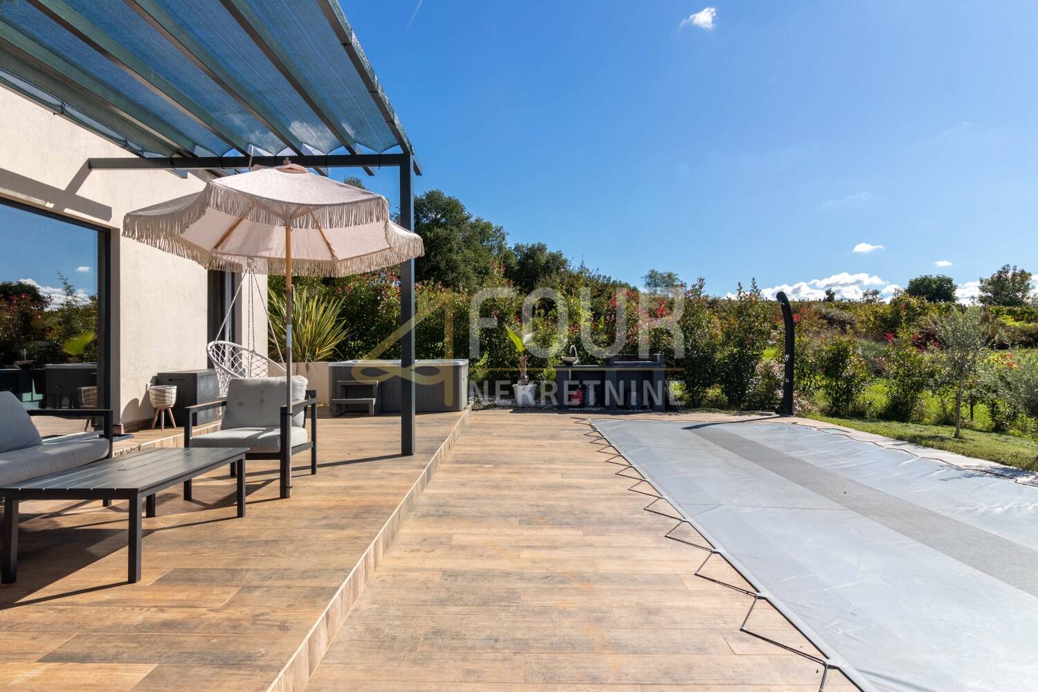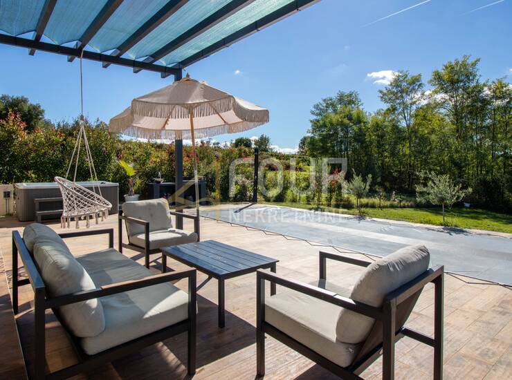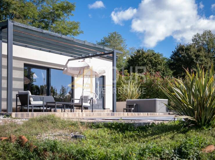 Moderna kuća za odmor s bazenom smještena na mirnoj lokaciji u okolici Višnjana, idealnoj za opuštanje i uživanje u privatnosti!