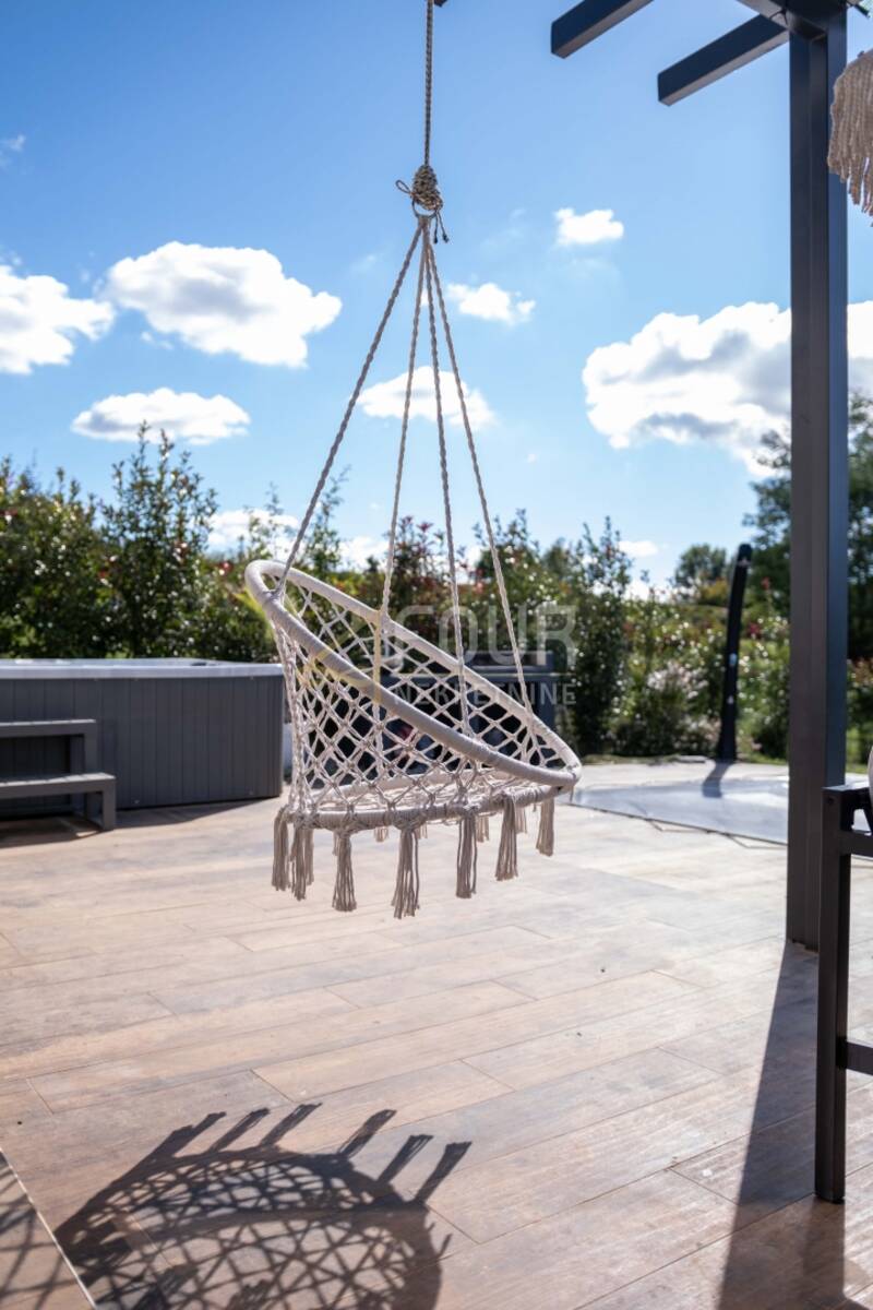 Orijentirana prema jugu, kuća obiluje prirodnim svjetlom i nudi prekrasan pogled na bazen i vinograd.