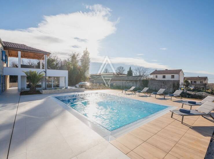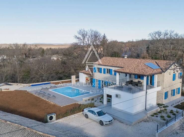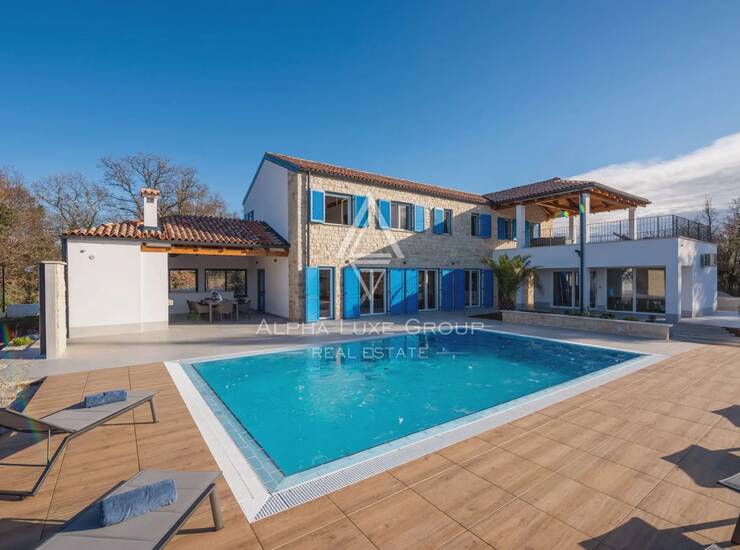 Ova novouređena luksuzna vila u blizini Višnjana nudi profinjenu kombinaciju suvremenog dizajna, izdašnog unutarnjeg prostora i potpune privatnosti na prekrasno uređenoj parceli od 1.600 m². Na više od 300 m² stambene površine, raspoređenih na tri pomno projektirane etaže, nekretnina spaja modernu estetiku s funkcionalnom udobnošću, stvarajući izniman dom idealan za cjelogodišnje stanovanje ili najam u segmentu luksuznog turizma.