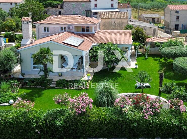 S ponosnom predstavljamo ovu vrhunsku i jedinstvenu kamenu vilu, smještenu u manjem naselju od svega nekoliko kuća, udaljenu 3 minute vožnje od centra Višnjana. Riječ je o vili jedinstvenog karaktera koje sve svoje posjetioce jednostavno ostavlja bez riječi, već na samome ulazu u vilu. Ova vila predstavlja privatnu nekretninu koja nikada nije bila u funkciji najma, već je korištena kao privatna obiteljska kuća, prilagođena svim potrebama današnje moderne obitelji.