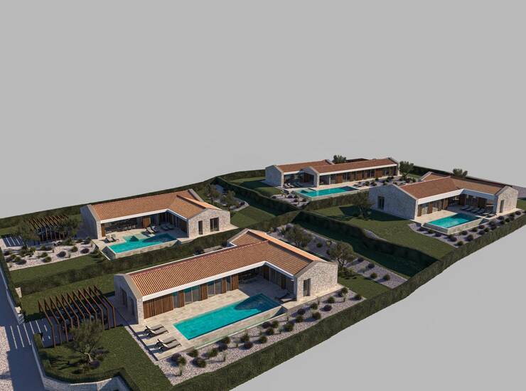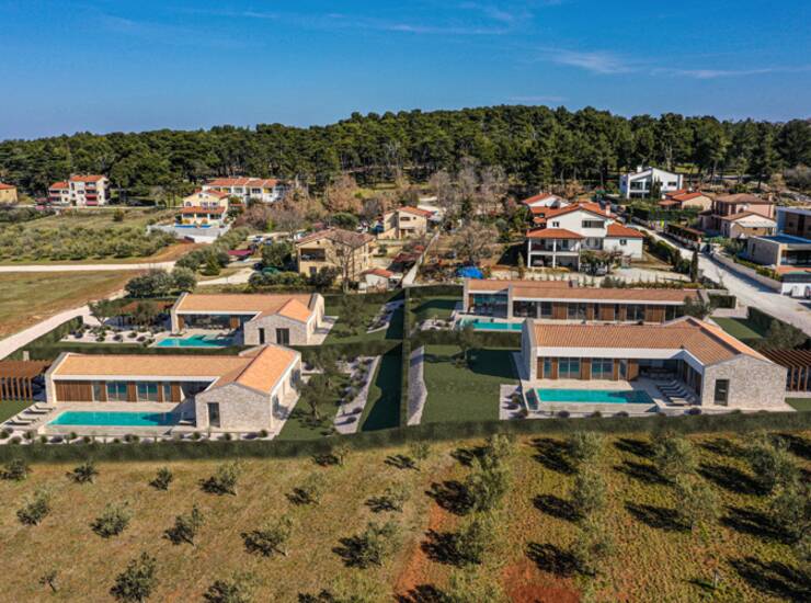 Nedaleko od centra ovog pitoresknog istarskog naselja Višnjan smjestio se privatni luksuzni resort od 4 vila kombinacije modernog i tradicionalnog dizajna. Smještene na uzvisini manjega brda okružene maslinama i zadnje u građevinskoj zoni privatnost je osigurana, a veliku vrijednost pridodaje i to što se sa svake vile se pruža pogled na more sa zalaskom sunca kao i pogled prema samome naselju. Blizina grada Poreč, koji je udaljen svega 12km, pridodaje na vrijednosti vilama kao i kvaliteti i jednostavnosti života.