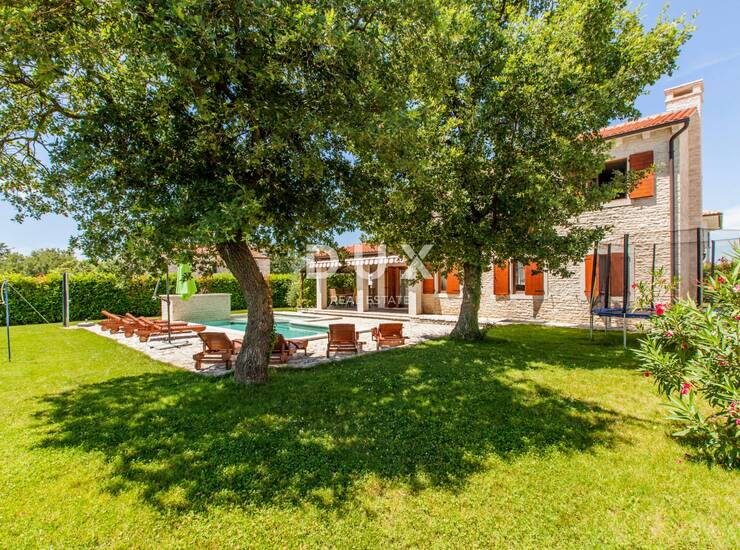 Okružena zelenilom u pitomom susjedstvu nedaleko Višnjana, na prodaju je rustikalna kuća s bazenom.