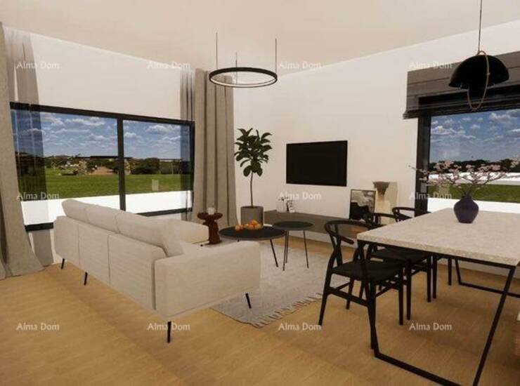 Zemljište je okruženo cestom po kojoj nema puno prometa, i to sa čak tri strane, što garantira privatnost obzirom do zemljišta na tom dijelu nije moguća gradnja. Sa prvog kata pruža se pogled na Motovun.
