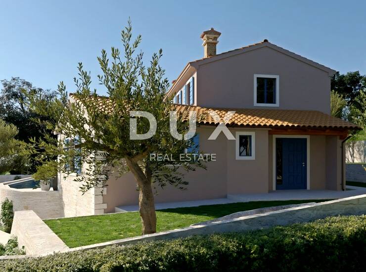 Na rubu tog slikovitog mjesta u harmoniji nježno zelenih terasa vinograda i maslinika i bujnih šumskih brežuljaka, na prodaju je mediteranska kuća s bazenom i panoramskim pogledom.