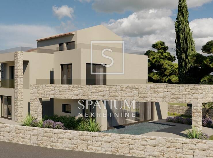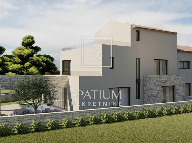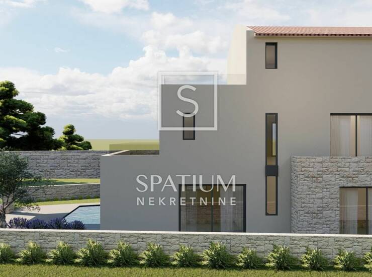 VIŽINADA, OKOLICA, u ponudi imamo građevinsko zemljište za gradnju obiteljske kuće. Projektiran je objekt neto površine 272,53 m² s dvije natkrivene terase s ljetnom kuhinjom u prizemlju te bazenom od 30 m². Kuća je osmišljena s prostranim dnevnim boravkom, četiri spavaće sobe, teretanom i vanjskim bazenom, a projekt u potpunosti zadovoljava uvjete za kategorizaciju 4*. Na drugom katu nalazi se wellness zona sa dvije saune i jacuzzi. Objekt je dio dvojne kuće, jednom stranom naslonjen na susjedni objekt, no može se graditi i koristiti neovisno jer se nalazi na zasebnoj čestici.