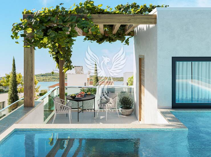 Ova kuća se odnosi na jednu od četiri dvoetažne kuće smješten je u drugom redu do mora u Srimi, jednom od najpoželjnijih dijelova mirnog dalmatinskog naselja te predstavlja izuzetnu priliku za one koji traže luksuzni dom ili atraktivnu investiciju u neposrednoj blizini mora. Samo nekoli