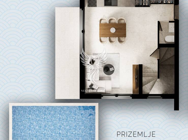SRIMA, GOTOVA DVOJNA KUĆA S BAZENOM, 3S+DB, S2